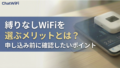 見落としやすいポイントChatWiFiのSIMプランはテザリングに関して動作保証・サポートの対象外となっています。PCやタブレットへのテザリング利用を主目的にする場合は、モバイルWiFiプランの方が向いています。