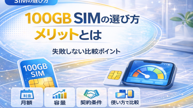 SIMプラン 100GBのSIMを選ぶならどれがいい?失敗しない選び方を解説 100GBのSIMを選ぶときに失敗しないために、月額・容量・契約条件・使い方との相性をわかりやすく解説します。 2026.03.08 SIMプラン